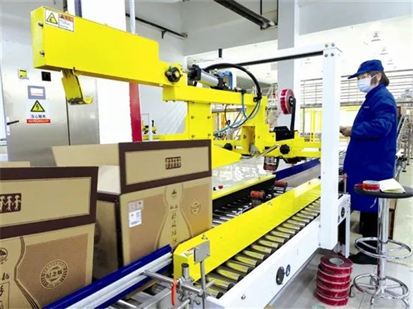 ▲仰韶酒业有限公司员工在产品包装线上工作。王一博 摄